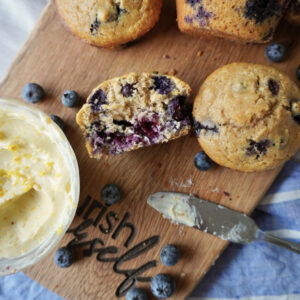 - Healthy Blueberry Muffins (with Whipped Lemon Honey Butter)