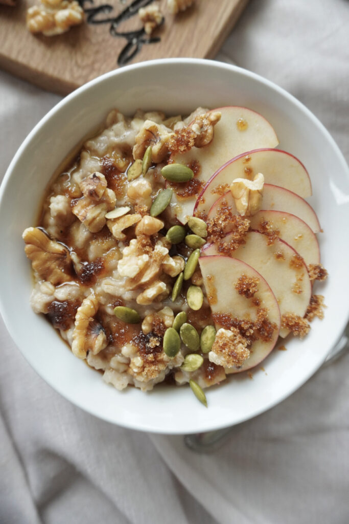 Top each serving of this spiced apple cider oatmeal with a pat of butter, brown sugar (make your own!), and chopped walnuts.